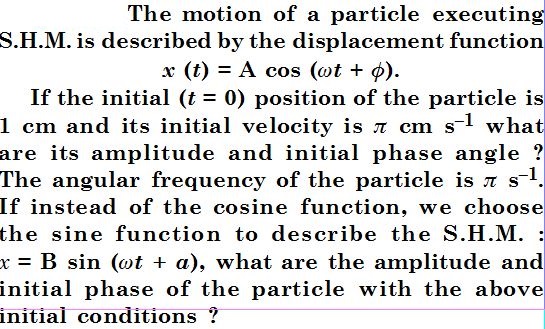 Plot the corresponding reference circle for each of the following S.H.M. Indicate the initial t = 0 position of the particle, the radius of circle and angular speed of the rotating particle. For simplicity, the sense of rotation may be fixed to the anticlockwise in every case : (x is in cm and t is in s)