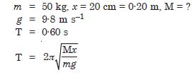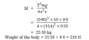 A spring balance has a scale that reads 0 to 50 kg. The length of the scale is 20 cm. A body suspended from this balance, when displaced and released, oscillates with a period of 0·6 s. What is the weight of the body ?