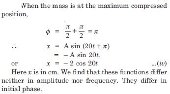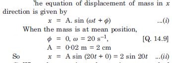In exercise 14.9, let us take the position of mass when the spring is unstretched as x = 0 , and the direction from left to right as the positive direction of x-axis. Given x as a function of time t for the oscillating mass if at the moment we start the stopwatch (t = 0), the mass is at the mean position