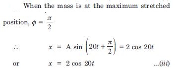 In exercise 14.9, let us take the position of mass when the spring is unstretched as x = 0 , and the direction from left to right as the positive direction of x-axis. Given x as a function of time t for the oscillating mass if at the moment we start the stopwatch (t = 0), the mass is at the maximum stretched position, and