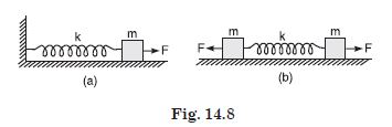 (b) is stretched by the same force F.