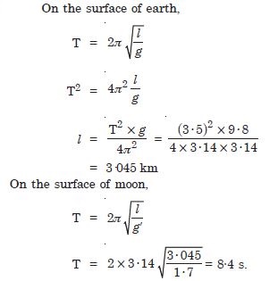 The acceleration due to gravity on the surface of the moon 1·7 m s–2. What is the time period of a simple pendulum on the surface of moon if time-period on the surface of earth is 3·5 s ? (g on the surface of earth = 9·8 m s–2)