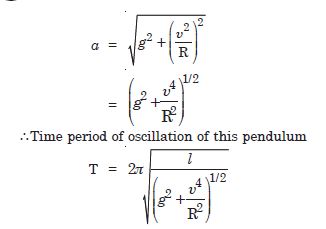 A simple pendulum of length l and having a bob of mass M is suspended in a car. The car is moving on a circular track of radius R with a uniform speed . If the pendulum makes small oscillations in a radial direction about its equilibrium position, what will be its time period ?