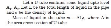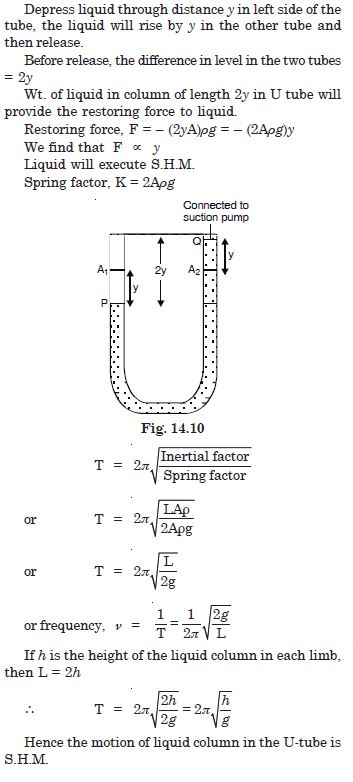 One end of a U-tube containing mercury is connected to a suction pump and the other end is open to the atmosphere. A small pressure difference is maintained between the two columns. Show that, when the suction pump is removed, the liquid column in the U-tube executes simple harmonic motion.
