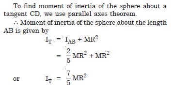 Find the moment of inertia of a sphere about a tangent to the sphere, given the moment of inertia of the sphere about any of its diameters to be 2MR2/5, where M is the mass of the sphere and R is the radius of the sphere.