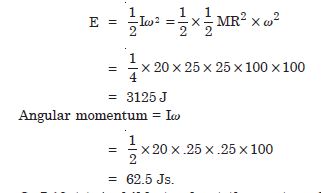 A solid cylinder of mass 20 kg rotates about its axis with angular speed 100 rad. The radius of the cylinder is 0.25 m. What is the kinetic energy associated with the rotation of the cylinder ? What is the magnitude of angular momentum of the cylinder about its axis ?