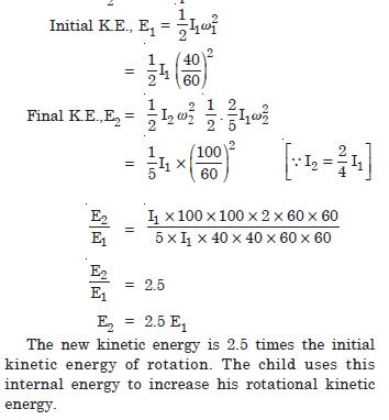 Show that the child’s new kinetic energy of rotation is more than the initial kinetic energy of rotation. How do you account for this increase in kinetic energy ?
