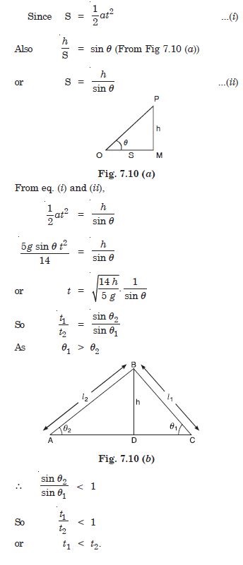 The time taken by the solid sphere will be longer when it roll down a plane with lesser inclination, because, the acceleration a is given by