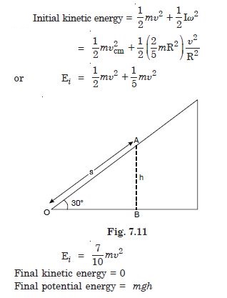 A cylinder rolls up an inclined plane of angle of inclination 30. At the bottom of the inclined plane the centre of mass of the cylinder has a speed