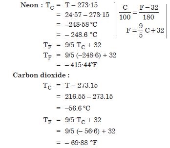 The triple points of neon and carbon dioxide are 24·57 K and 216·55 K respectively. Express these temperatures on the Celsius and Fahrenheit scales.
