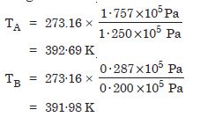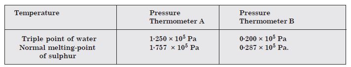 Two ideal gas thermometers A and B use oxygen and hydrogen respectively. The following observations are made :