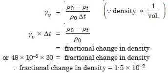 The coefficient of volume expansion of glycerine is 49 × 10–5 C–1. What is the fractional change in its density for 30 C rise in temperature ?