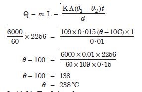 A brass boiler has a base area of 0.15 m2 and thickness 1·0 cm. It boils water at the rate of