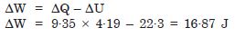 In changing the state of a gas adiabatically from an equilibrium state A to another equilibrium state B, an amount of work equal to 22.3 J is done on the system. If the gas taken from state A to B via a process in which net heat absorbed by the system is 9.35 cal, how much is the net work done by the system in latter case (take 1 cal = 4·19 J)