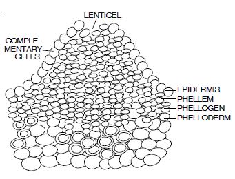 with loose aggregate cells called comple-mentary cells derived from the periderm and acts as an organ of gaseous exchange.