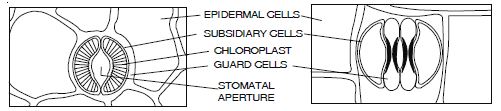 Stomatal apparatus (a) stomata with bean-shaped guard cells (b) stomata with dumb-bell shaped guard cell.