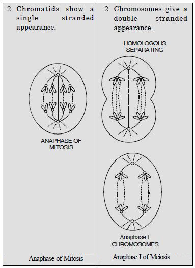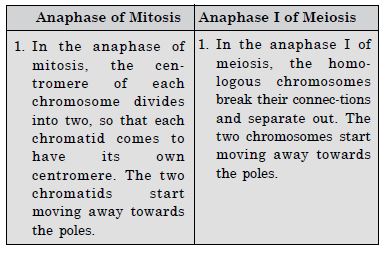 Differences between anaphase of mitosis and anaphase I of meiosis.