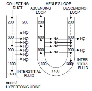 (ii) The increase in the osmolarity of the interstitial tissue due to sodium pump causes some water to leave the descending limb by passive diffusion. This makes the urine increasingly hypertonic in descending limb and vice-versa in ascending limb.