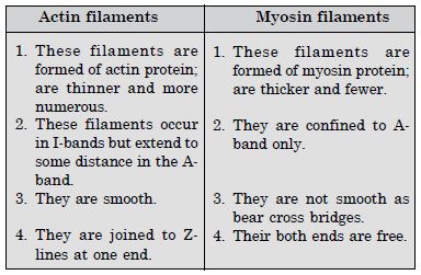 - Differences between actin and myosin filaments :