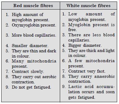 - Differences between red muscle fibres and white muscle fibres