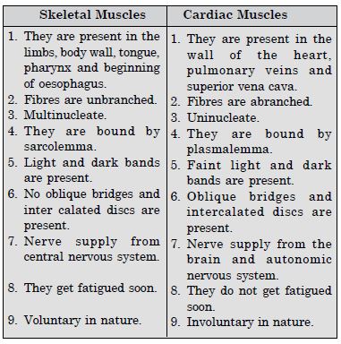 Differences between skeletal muscles and cardiac muscles