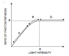 - At which point/s (A, B or C) in the curve is light a limiting factor ?