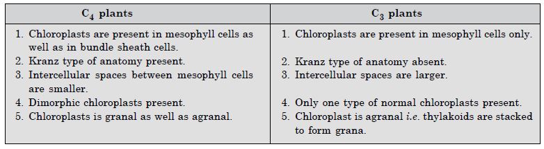 - Differences in Anatomy of leaf in C3 and C4 plants.