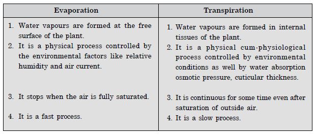 - Differences between evaporation and transpiration