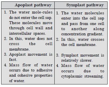- Apoplast and Symplast pathways of absorption of water in plants