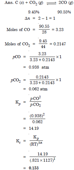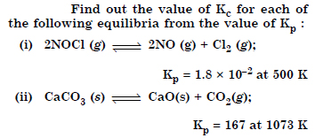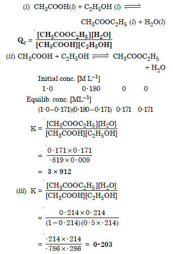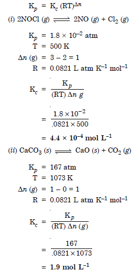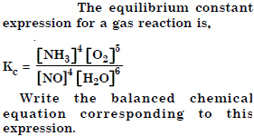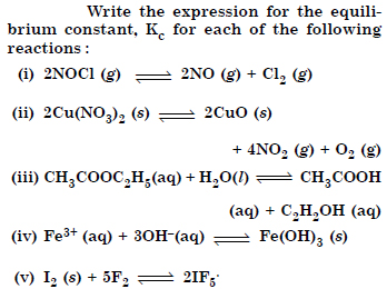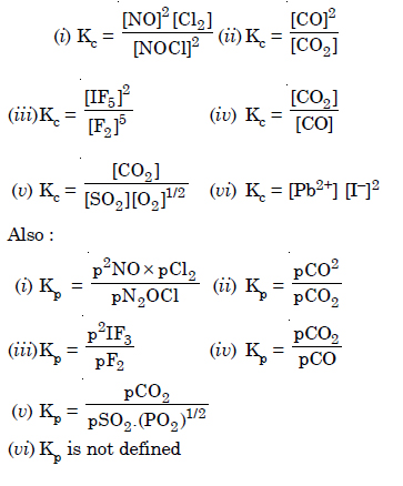 While writing expressions for equilibrium constant involving gases, liquids and solids, only the concentrations of the gases are taken into consideration, since the change in concentration of pure liquids and solids is negligibly small as compared to that of gases and is taken as constant.