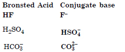 What will be the conjugate bases for the Bronsted acids : HF, H2SO4 and HCO3 ?