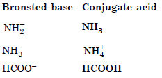 Write the conjugate acids for the following bases : NH2, NH3 and HCOO.