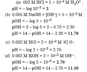 (a) 0.003 M HCl (b) 0.005 M NaOH