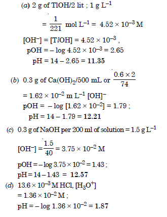 (a) 2 g of TlOH dissolved in water to give 2 litres of solution.