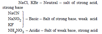 Predict if the solutions of the following salts are neutral, acidic or basic : NaCl, KBr, NaCN, NH4NO3 and KF.