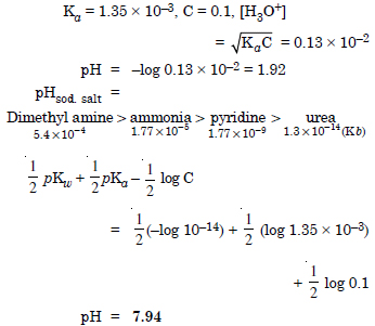 The ionization constant of chloroacetic is 1.35 × 10–3. What will be pH of 0.1 M acid and its 0.1 M sodium salt solution ?