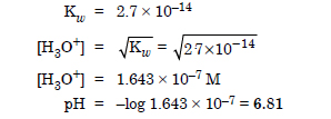 Ionic product of water at 310 K is 2.7 × 10–14. What is the pH of neutral water at this temperature ?