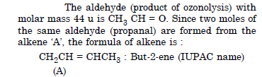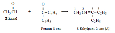 An alkene ‘A’ upon ozonolysis gives a mixture of ethanal and pentan-3-one. Write the structure and IUPAC name of ‘A’.