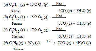 Write the chemical equations for the combustion of the following hydrocarbons :