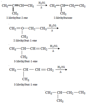 Write the structures of all the alkenes which on hydrogenation give 2-methylbutane.