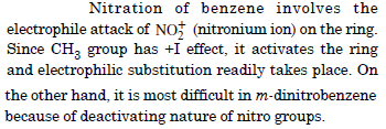 Out of benzene, m-dinitrobenzene and toluene, which will undergo nitration most easily and why ?