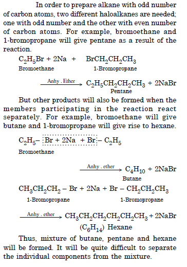 Why is Wurtz reaction not preferred for the preparation of alkanes containing odd number of carbon atoms ? Illustrate your answer by taking an example.