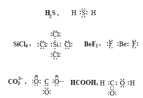 Draw Lewis structures for the following molecules and ions : H2S, SiCl4, BeF2, CO3 2–, HCOOH.