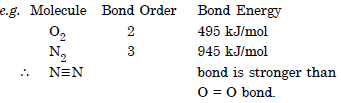 Bond strength is inversely proportional to bond order. The smaller the bond order the stronger their bond will be :