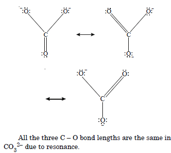 Carbonate ion CO3 2– is a resonance hybrid of the following structures :