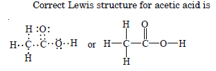 The skeletal structure of CH3COOH as shown below is correct, but some of the bonds are wrongly shown. Write the correct Lewis