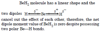 Explain, why BeH2 molecule has zero dipole moment although the Be-H bonds are polar.