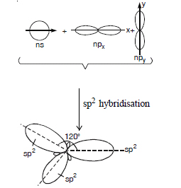 by the mixing up of one ns and two ns orbitals and these lie in the same plane oriented at an angle of 120°