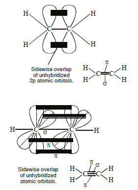 Draw diagrams showing the formation of a double and triple bond between carbon atoms in the C2H4 and C2H 2molecules.