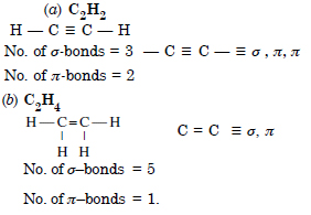 What is the total number of sigma and pi bonds in the following molecules ? (a) C2H2 (b) C2H4.